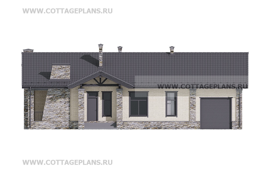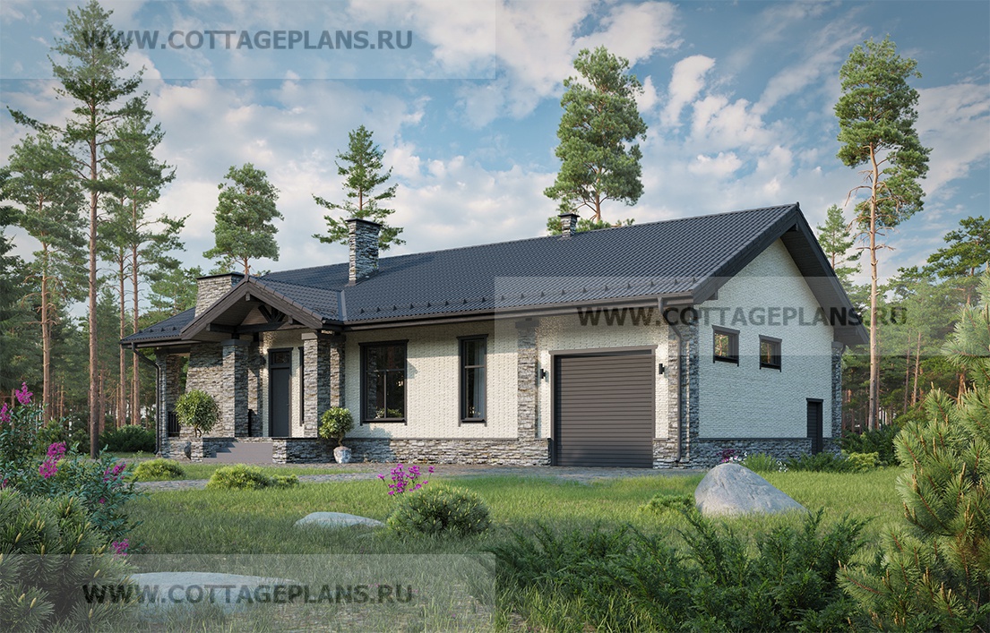 Проект дома 700-78 площадь 129.7 м2* из пеноблоков, газоблоков, одноэтажный, с пристроенным гаражом на 1 машину