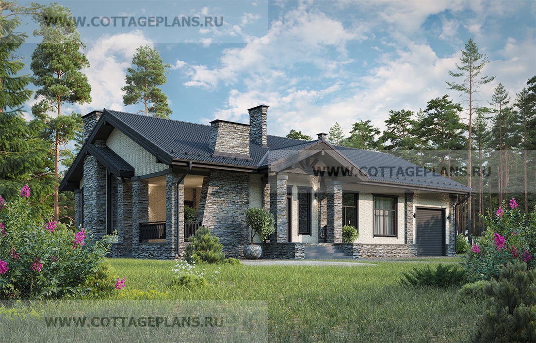 Проект дома 700-80 площадь 182.8 м2* из пеноблоков, газоблоков, одноэтажный, с пристроенным гаражом на 1 машину