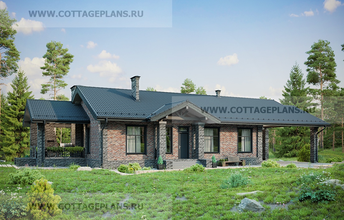 Проект дома 702-23 площадь 183.4 м2* из пеноблоков, газоблоков, одноэтажный, с тремя спальнями