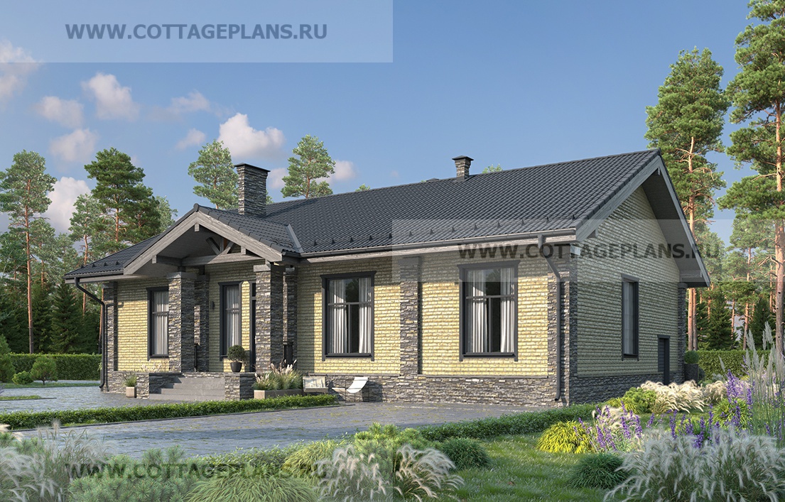 Проект дома 702-30 площадь 124.0 м2* из пеноблоков, газоблоков, одноэтажный, с четырьмя спальнями