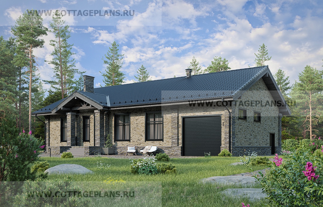 Проект дома 700-92 площадь 205.6 м2* из пеноблоков, газоблоков, одноэтажный, с пристроенным гаражом на 1 машину