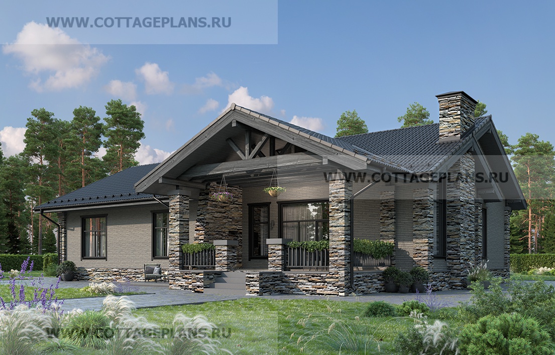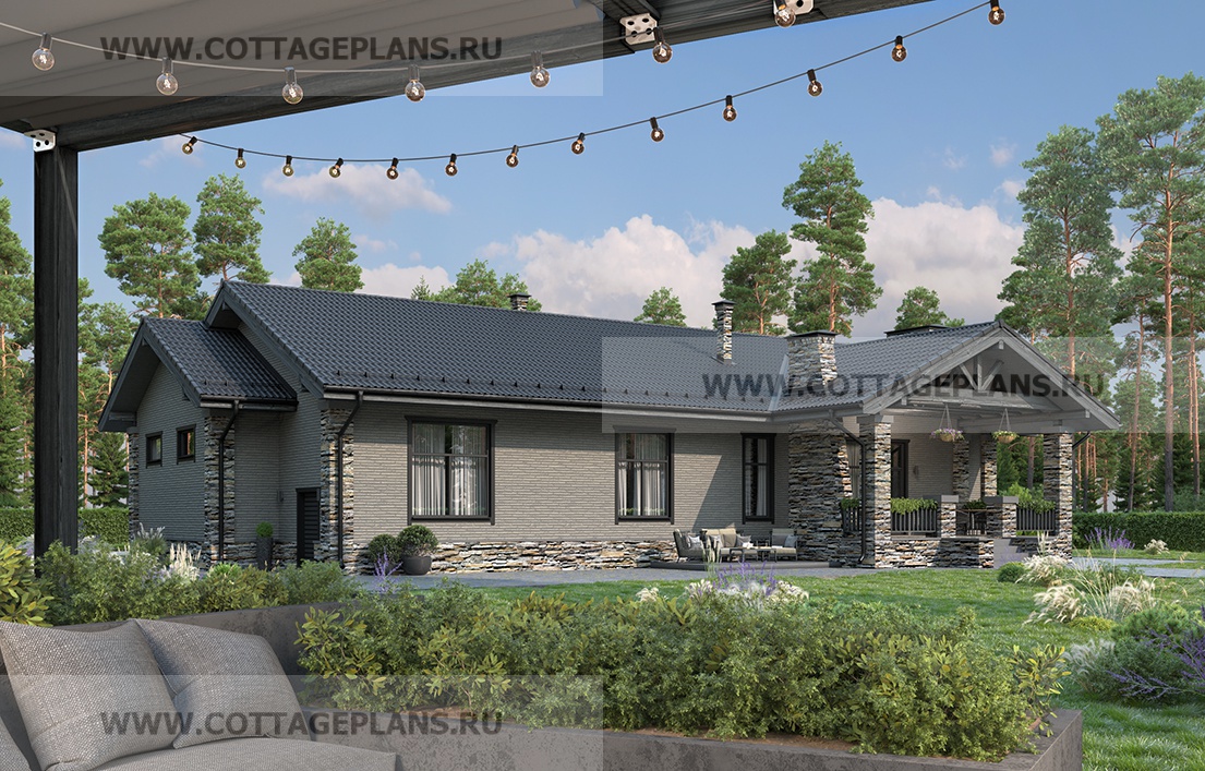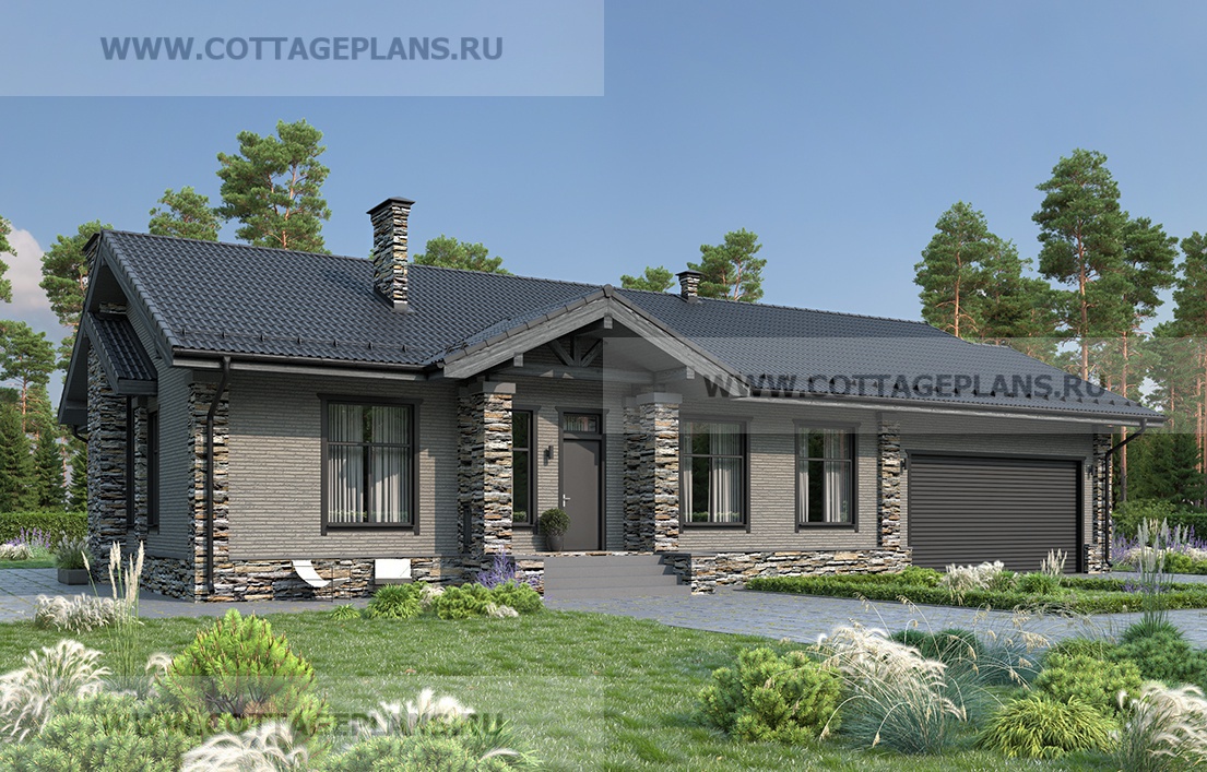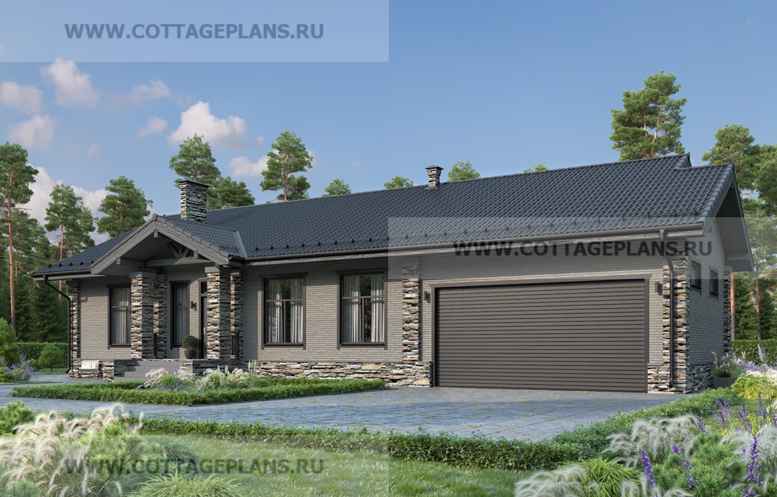 Проект дома 702-38 площадь 232.0 м2* из пеноблоков, газоблоков, одноэтажный, с пристроенным гаражом на 2 машины