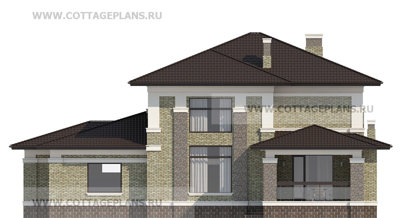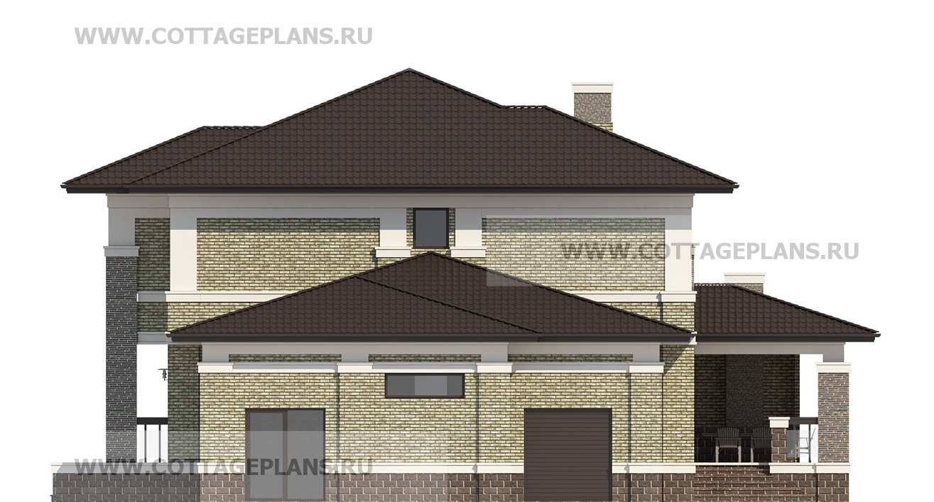 Проект дома 205-29 площадь 368.9 м2* из пеноблоков, газоблоков, двухэтажный, с полноценным вторым этажом меньшей площади, чем первый этаж, с пристроенным гаражом на 2 машины