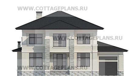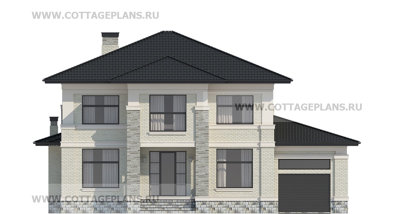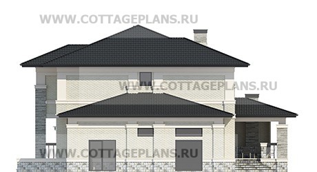 Проект дома 205-28 площадь 470.9 м2* из пеноблоков, газоблоков, двухэтажный, с полноценным вторым этажом меньшей площади, чем первый этаж, с пристроенным гаражом на 1 машину