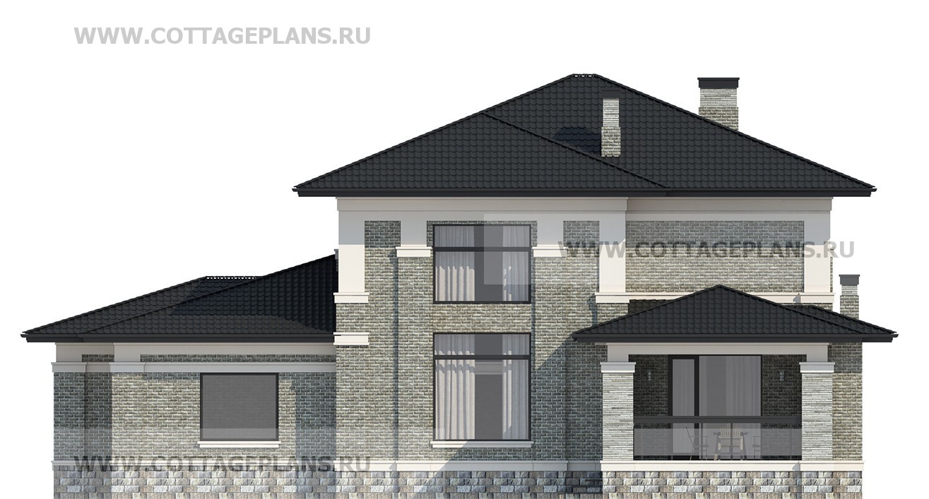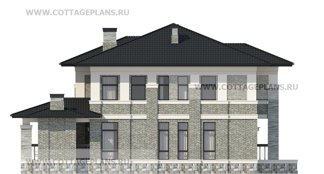Проект дома 205-34 площадь 449.2 м2* из пеноблоков, газоблоков, двухэтажный, с полноценным вторым этажом меньшей площади, чем первый этаж, с цокольным этажом