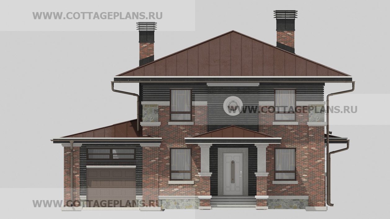 Проект дома 206-29 площадь 181.5 м2* из пеноблоков, газоблоков, двухэтажный с полноценным вторым этажом, с пристроенным гаражом на 1 машину