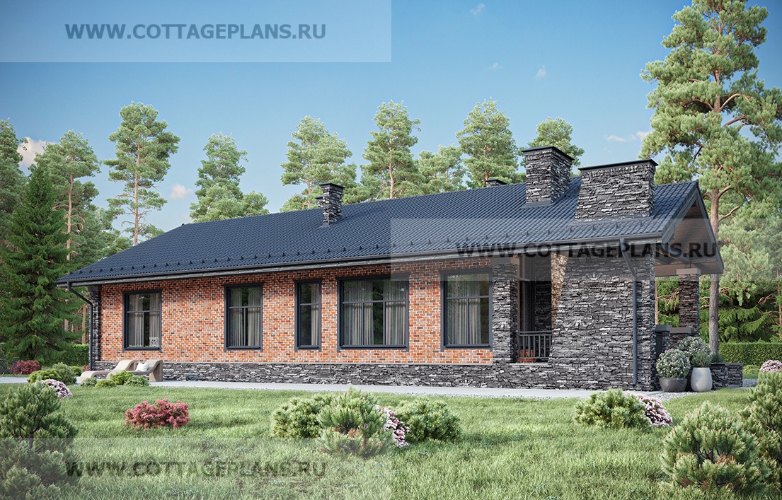 Проект дома 702-08 площадь 154.7 м2* из пеноблоков, газоблоков, одноэтажный, с двумя спальнями