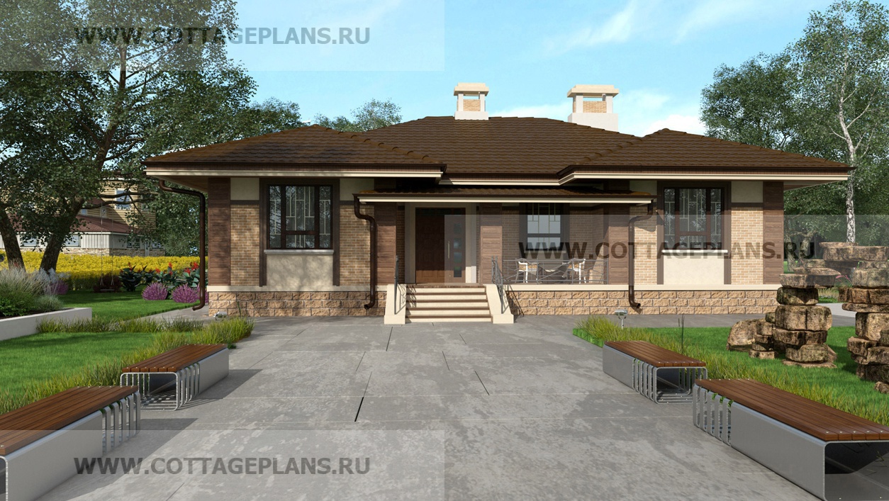 Проект дома 702-57 площадь 121.6 м2* из пеноблоков, газоблоков, одноэтажный, с тремя спальнями