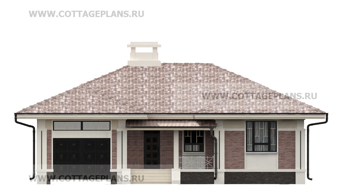 Проект дома 702-60 площадь 122.4 м2* из пеноблоков, газоблоков, одноэтажный, с пристроенным гаражом на 1 машину