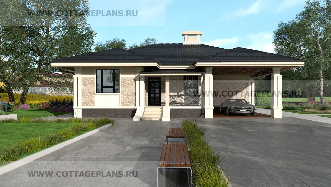 Проект дома 702-63 площадь 97.9 м2* из пеноблоков, газоблоков, одноэтажный, с двумя спальнями