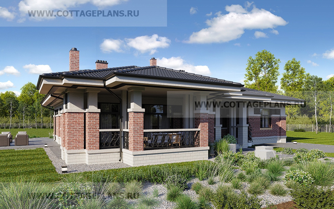Проект дома 702-56 площадь 212.3 м2* из пеноблоков, газоблоков, одноэтажный, на две семьи родители и дети, с неравными частями